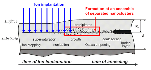 The vision of an all-silicon optical chip is hampered by the lack of a suitable silicon-based light source. A promising candidate for this role is silicon nanocrystals (Si-nc) formed in a matrix of silicon oxide. We have grown Si-nc by ion implantation and annealing, and characterized them by a number of techniques, to study the physical processes involved in the growth, and to relate that to the mechanisms of luminescence (including quantum confinement in the Si-nc, which are about 3 nanometres in diameter).