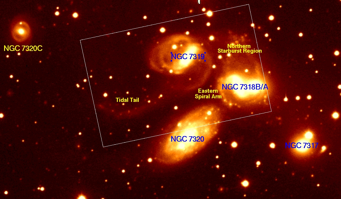 most of the galaxies in the group (NGC7319, NGC7318A, and NGC7317),